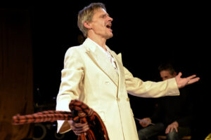 – Jean de Fer – L’homme sauvage et l’enfant, ce spectacle inspiré d’un conte initiatique de Grimm, fait écho à son engagement au sein de l’école Aurore, une école de l’initiation. (40 représentations en Belgique, France et Suisse).
